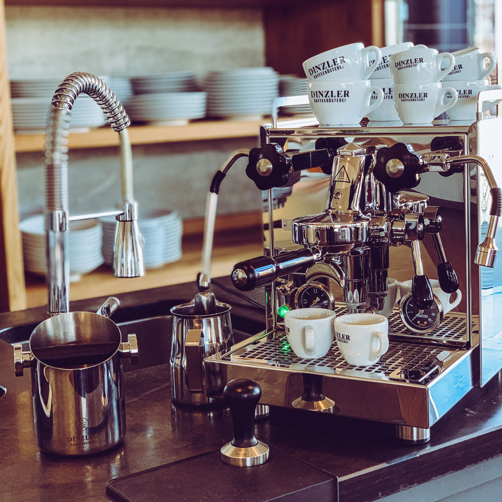 1 Einzel-, 1 Doppelportionssiebträger, 1er+2er Sieb Festwasseranschluss-Set, Edelstahltamper, Blindsieb, Reinigungsbürste, Bedienungsanleitung